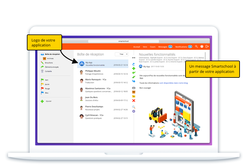 Ci-dessous, vous trouverez des exemples d’applications qui utilisent l’API Smartschool.